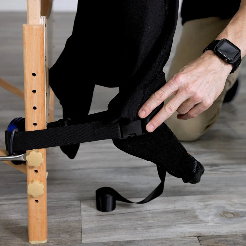 Mocowanie ActivForce2 na stopie pacjenta przy użyciu pasa podczas testu siły.