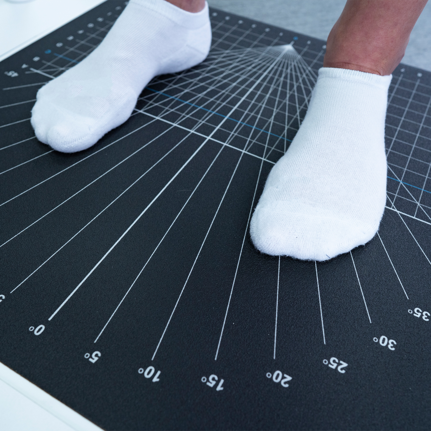 Zbliżenie na matę platformy ALFA – skala kątowa do oceny stabilności.