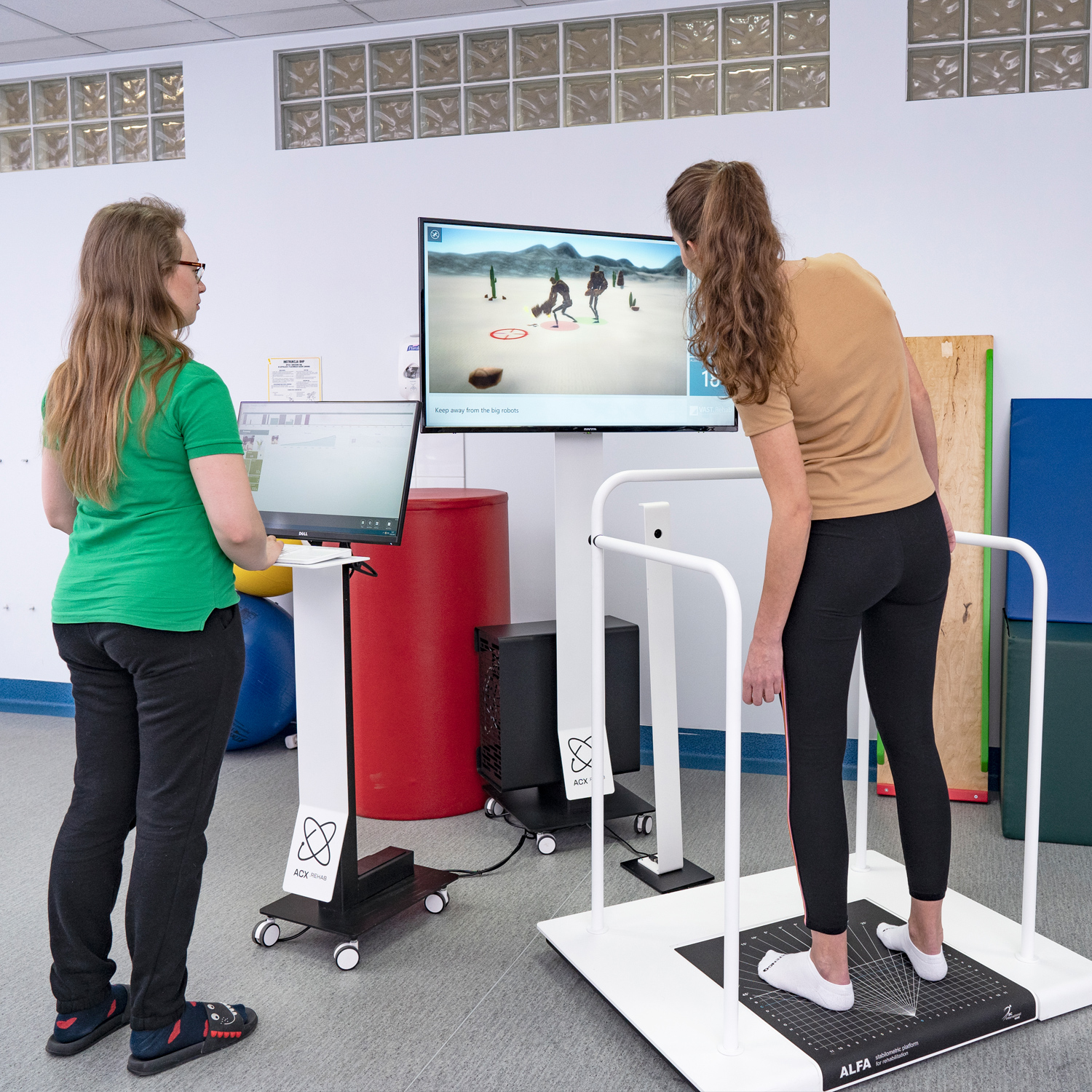Platforma stabilometryczna ALFA – ćwiczenia równowagi z wykorzystaniem monitora.