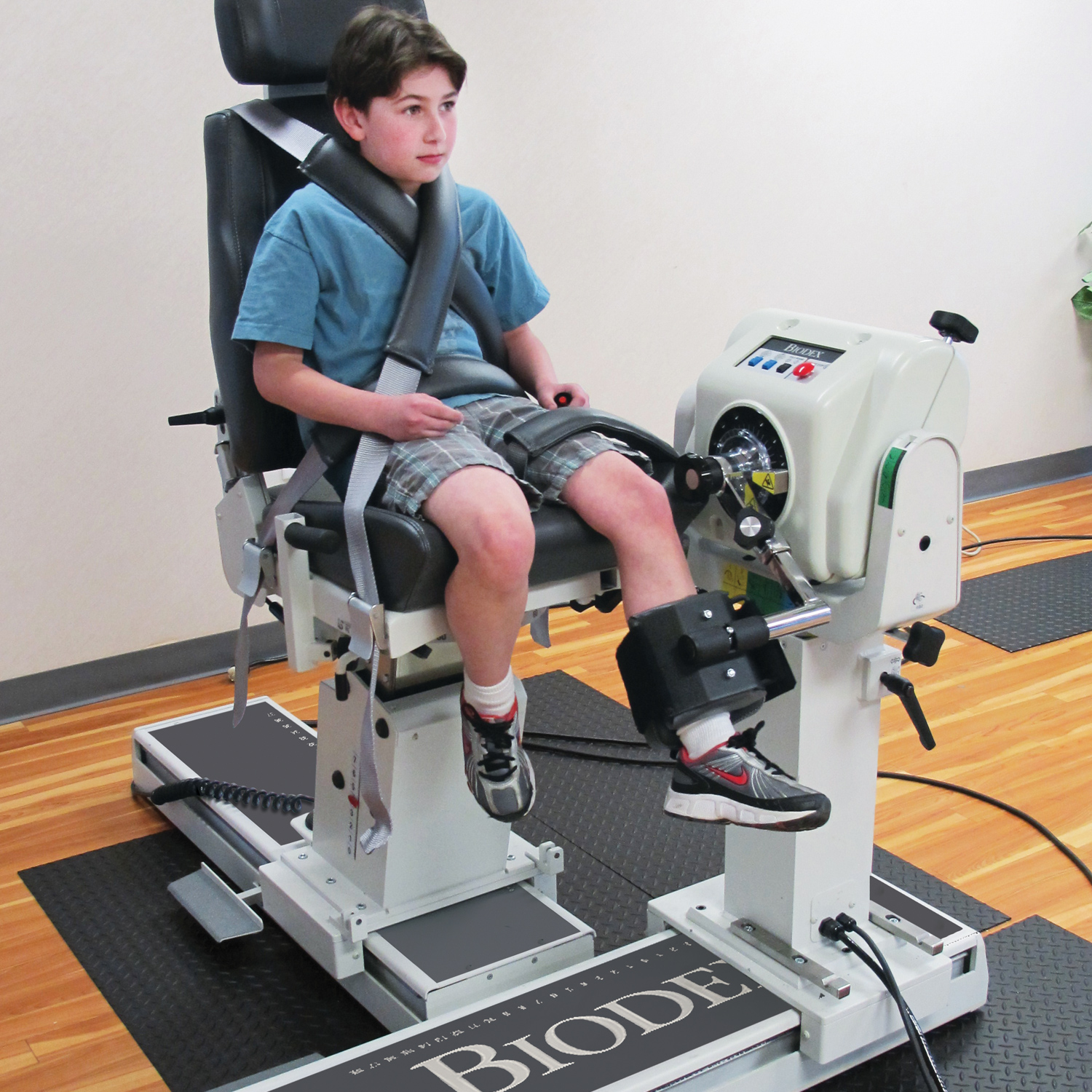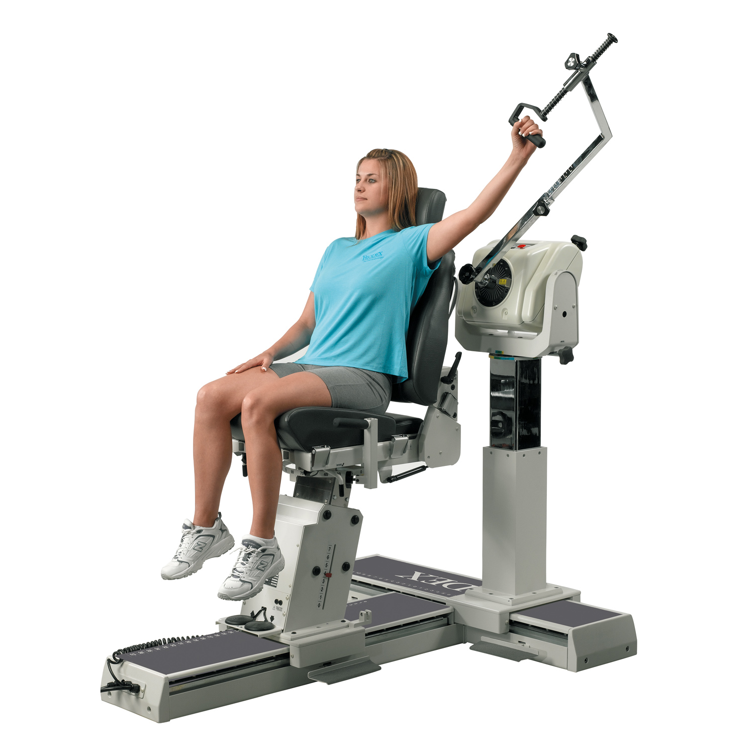 Biodex System 4 to zestaw do oceny i treningu nerwowo-mięśniowego w warunkach pracy izometrycznej, izotonicznej (koncentrycznej i ekscentrycznej), izokinetycznej (koncentrycznej i ekscentrycznej), reaktywnej ekscentrycznej i ruchu biernego z możliwością pełnej archiwizacji i eksportu danych do analizy statystycznej. Urządzenie wyposażone jest w regulowany elektrycznie, wygodny, obrotowy, przesuwany na podstawie fotel oraz dynamometr elektryczny regulowany w 3 płaszczyznach do testów/ćwiczeń na zróżnicowanej grupie pacjentów. Do analizy wykonanych badań lub ćwiczeń służy mobilna stacja robocza z panelem kontrolnym.
