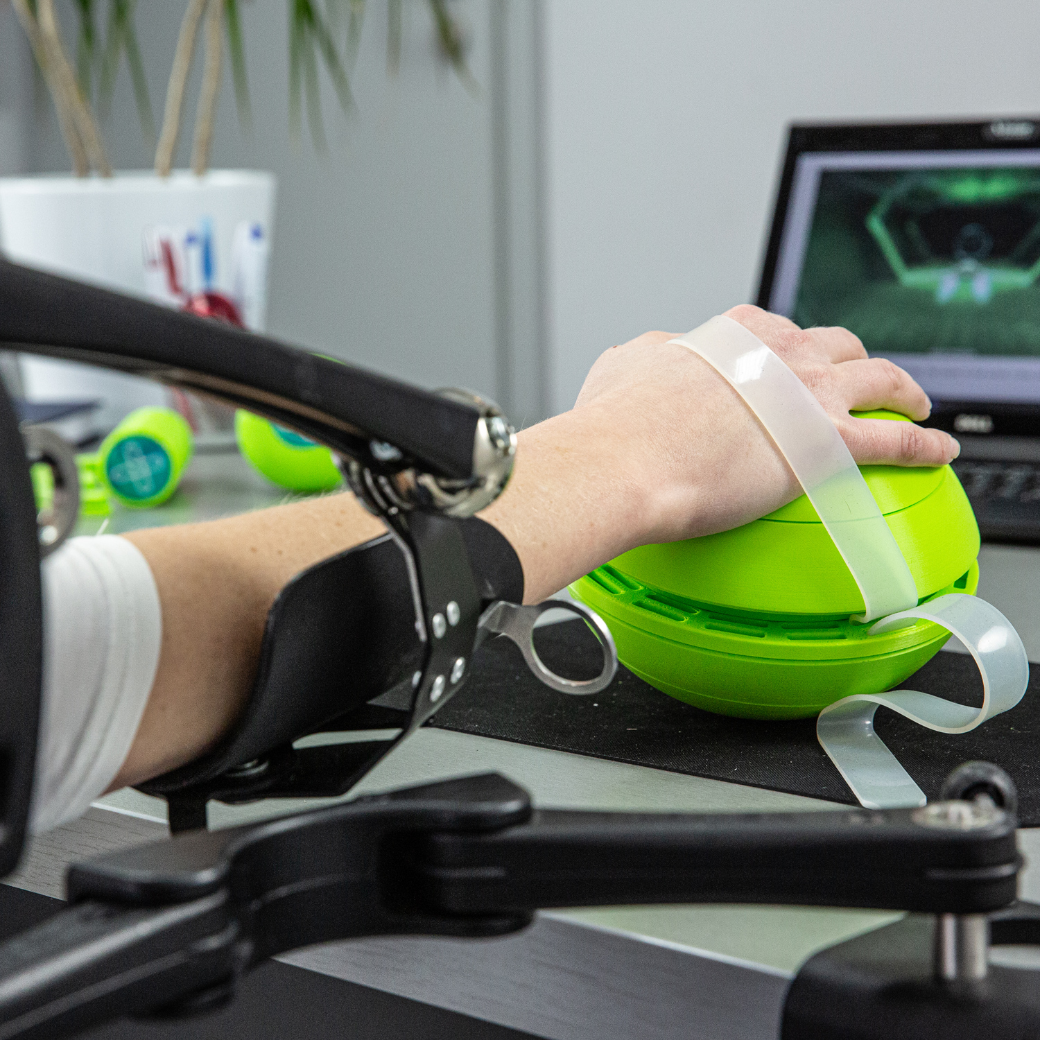 Edero – aparat rehabilitacyjny, odciążenie ręki podczas ćwiczeń z wykorzystaniem gier komputerowych.