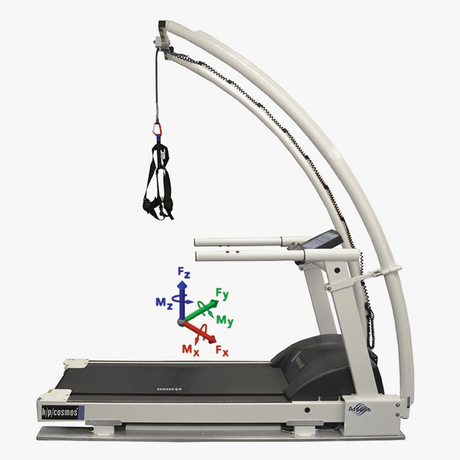 Dzięki wieloletniemu doświadczeniu w budowanie bieżni diagnostycznych i treningowych, firma h/p/cosmos opracowała jedyna na rynku bieżnię, która posiada funkcjonalność pomiaru sił reakcji podłoża w trzech osiach (Fx, Fy i Fz) posiadając jednocześnie pojedynczy pas pomiarowy. Inne tego typu bieżnie posiadają system podwójnego pasa – zarówno w systemie „tandem” (czyli osobny pas dla każdej kończyny) oraz systemie „fore-aft” (pas przedni i tylni); każde z takich rozwiązań sprawia, że pozostaje pewna tzw. „martwa” strefa na łączeniu pasów, przez którą nie można zmierzyć całości siły reakcji podłoża.
