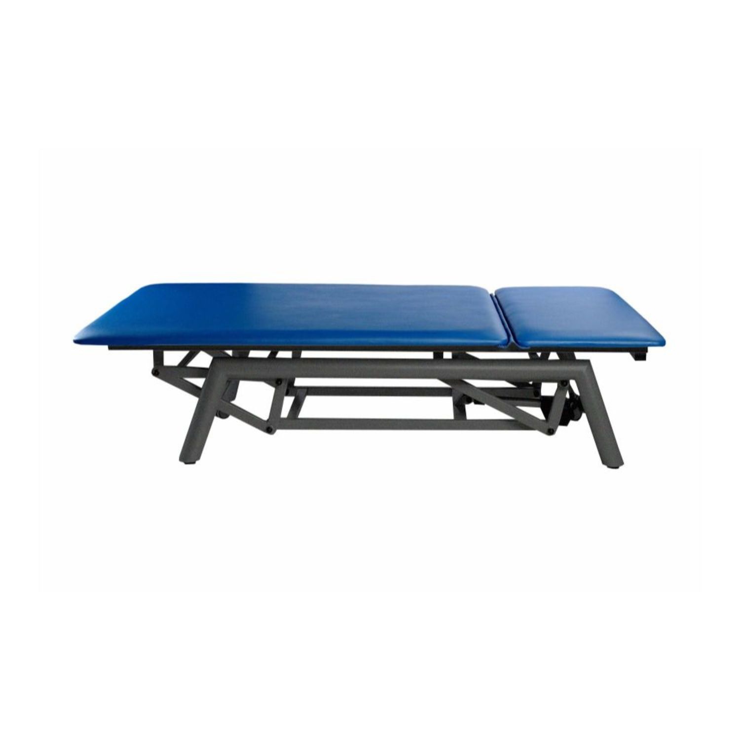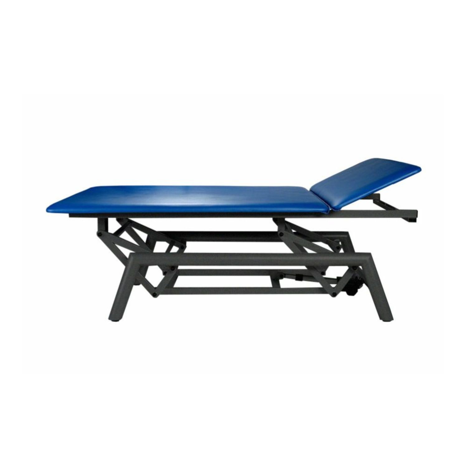 Korund-E – stół rehabilitacyjny do terapii Bobath, widok z boku z uniesioną częścią leżyska.