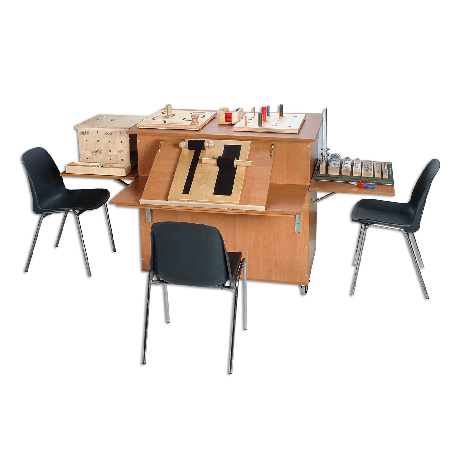 Urządzenie przeznaczone jest dla osób ze schorzeniami ręki. Stosuje się go w przypadkach niedowładów i deformacji ręki, w wyniku przebytych chorób: gośćcowych, reumatycznych, neurologicznych, po urazach ortopedycznych. Zestaw umożliwia wykonywanie ćwiczeń czynnych chorej ręki, poprawia koordynację wzrokowo-ruchową, doskonali precyzję chwytu. Zestaw Manus zawiera moduł główny na podstawie jezdnej z 3 rozkładanymi blatami oraz 4 dowolnie wybrane tablice terapeutyczne. Opcjonalnie istnieje możliwość dowolnej konfiguracji stołu z wybranymi tablicami: TM1 - TM14.
