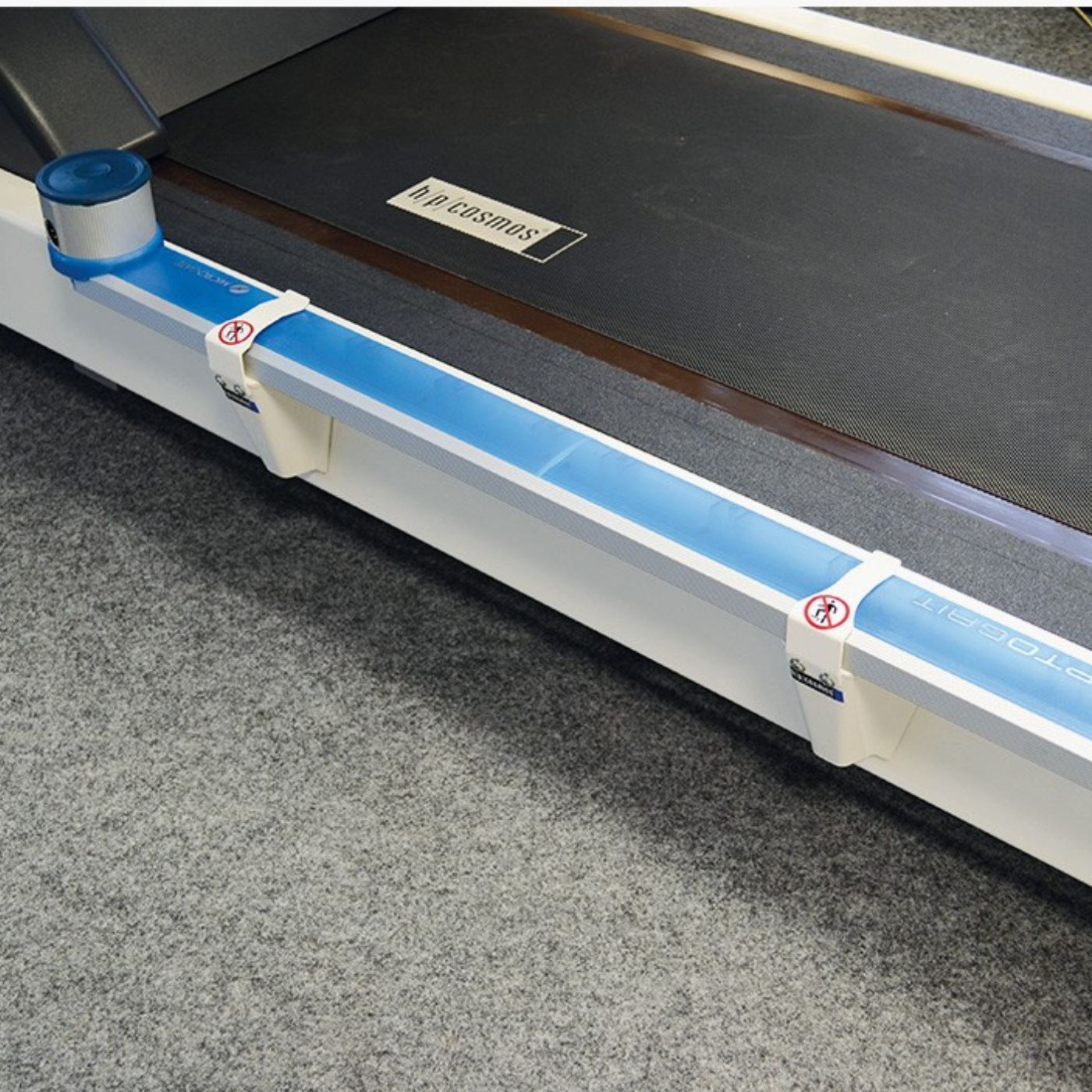OptoGait – system do analizy ruchu na bieżni diagnostycznej z panelem sterującym.Listwa pomiarowa OptoGait – system do analizy chodu i biegu.OptoGait – czujniki zamontowane na bieżni do analizy parametrów ruchu.