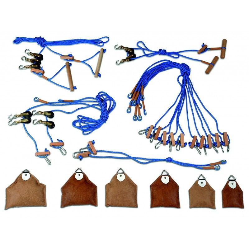 Osprzęt do ćwiczeń i zawieszeń to zestaw komponentów przeznaczonych dla fizjoterapeutów, które można wykorzystać w kabinach do podwieszania pacjentów w celu częściowego lub całkowitego podparcia za pomocą lin, zawieszeń i ciężarów.