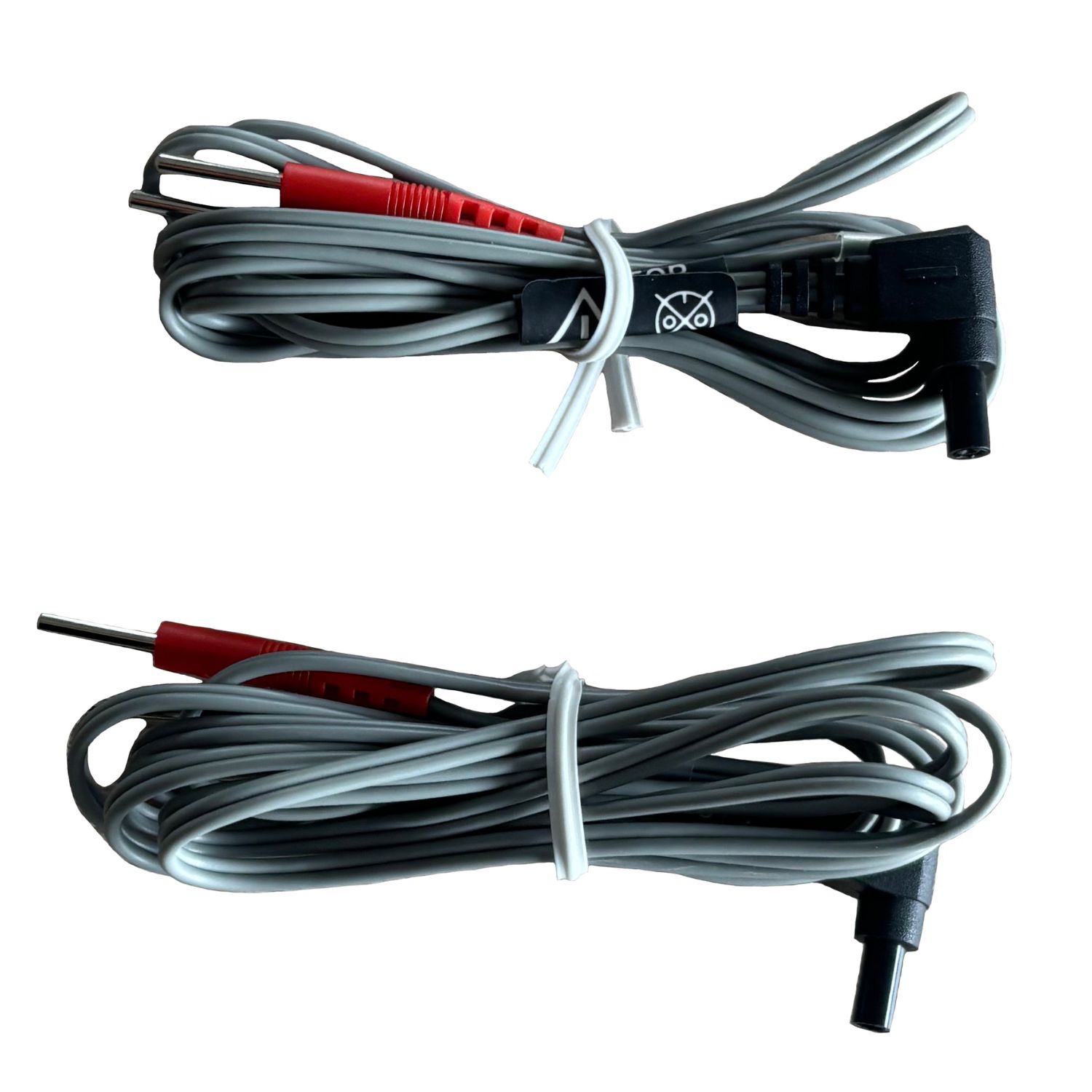 Przewód do aparatu TENS – komplet 2 sztuki, widok zwiniętego kabla z końcówkami.