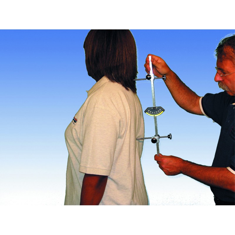 Skoliometr przeznaczony jest do pomiaru i oceny sylwetki badanego. Konstrukcja urządzenia pozwala na ocenę: symetrii obręczy barkowej i biodrowej (zarówno w stopniach kątowych jak i w centymetrach), wielkości garbu żebrowego i wału lędźwiowego, wielkości krzywizn poszczególnych odcinków kręgosłupa, ustawienie kości krzyżowej w płaszczyźnie strzałkowej.