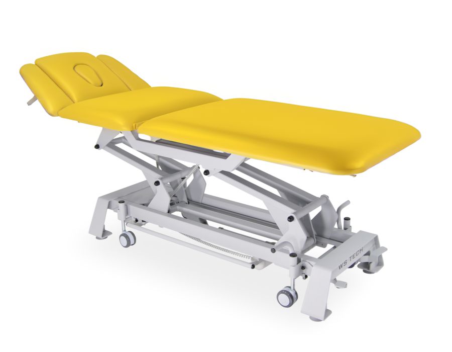 Trzyczęściowy stół do rehabilitacji i masażu SS-E04 z regulacją wysokości i żółtą tapicerką