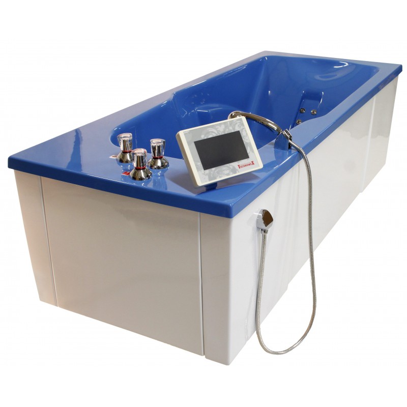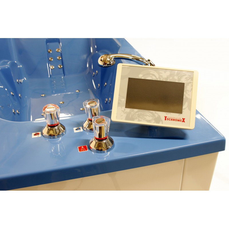 Wanna T-MP UWM AUTOMAT przeznaczona jest do przeprowadzania zabiegu automatycznego masażu podwodnego. Masaż wykonywany jest za pomocą systemu 28 dysz podzielonych na 5 sekcji. Zastosowanie 5 sekcji po 4 lub 6 dysz umożliwia dogłębne oddziaływanie strumienia wody na tkanki, co powoduje maksymalne możliwe do uzyskanie rozluźnienie mięśni. Masaż podwodny wykonywany jest za pomocą strumienia cieczy tłoczonej pod ciśnieniem kierowanej do kolejnych sekcji dysz lub za pomocą węża zabiegowego z wymiennymi końcówkami. Obecność elektronicznego panelu sterowania umożliwia przeprowadzenie masażu w określonym kierunku.